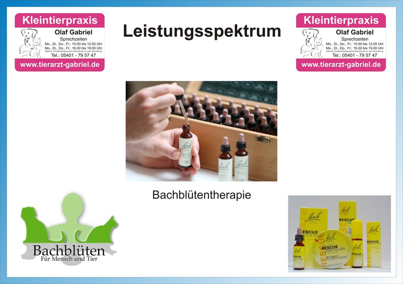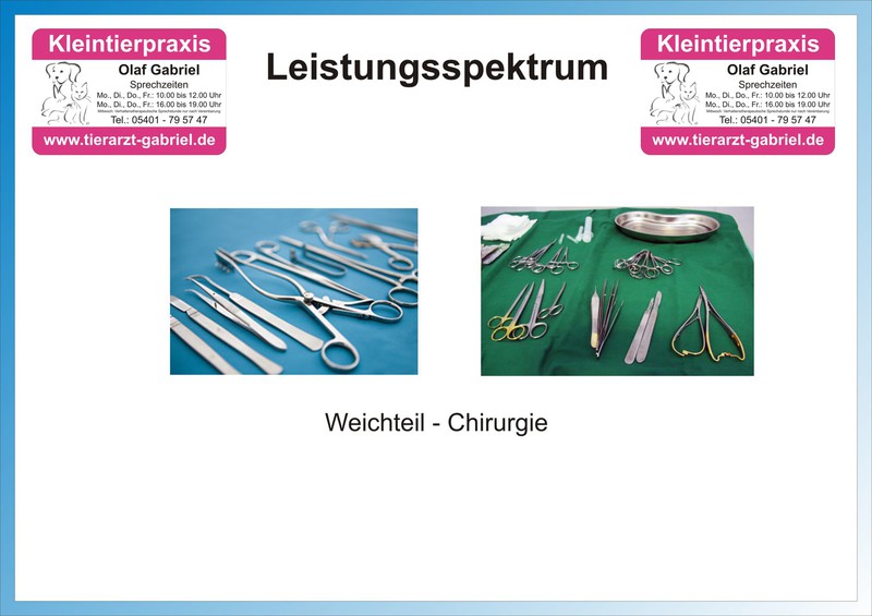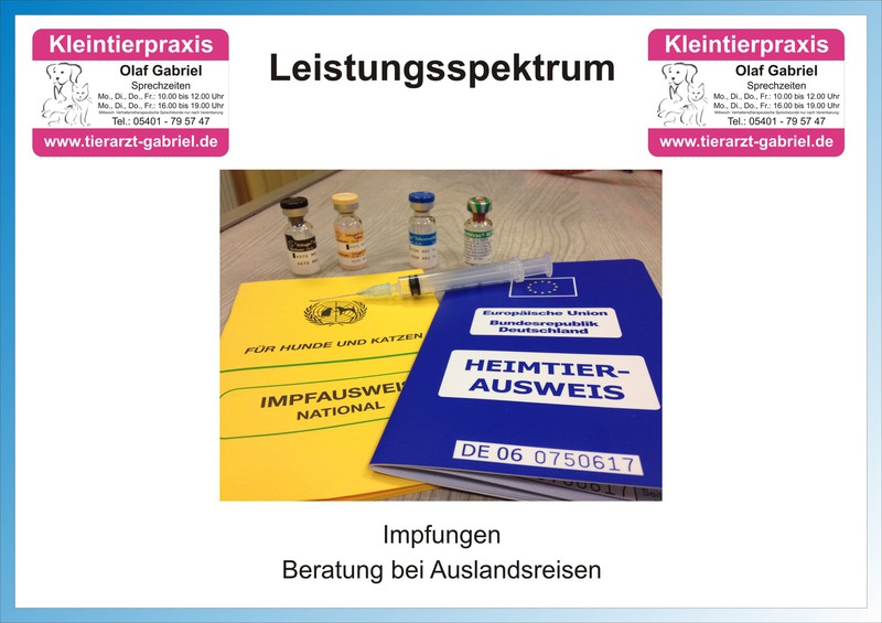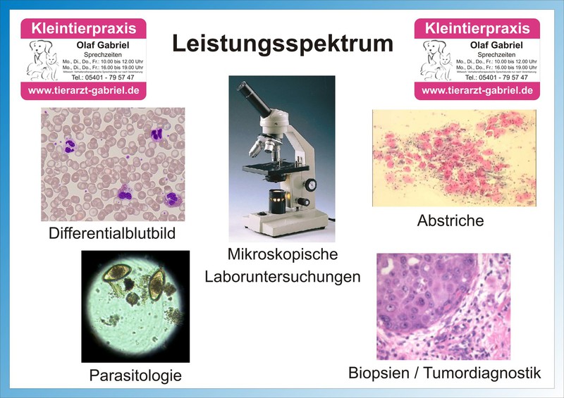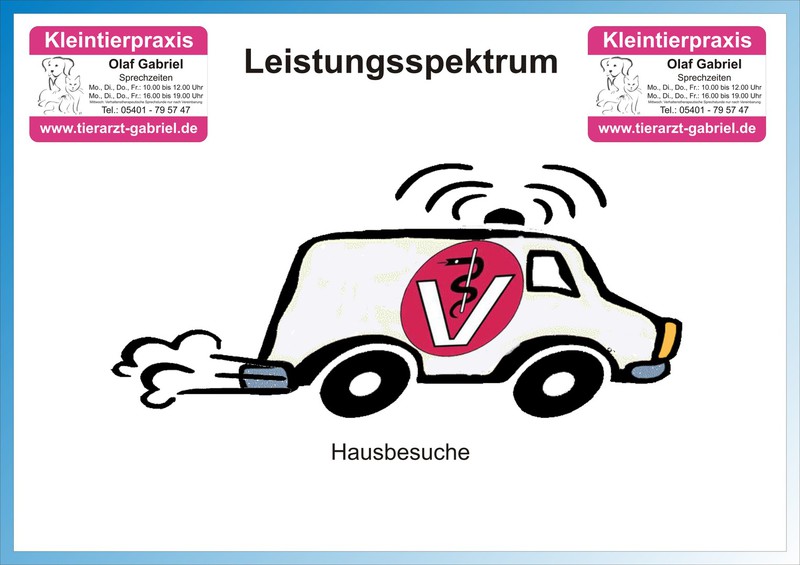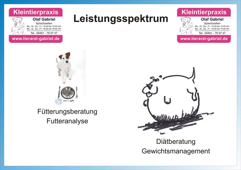 Nachfolgend gebe ich Ihnen einen kleinen Überblick über das umfangreiche Leistungsangebot, das ich für Hunde, Katzen, Heimtiere und Ziervögel in meiner Praxis anbiete: